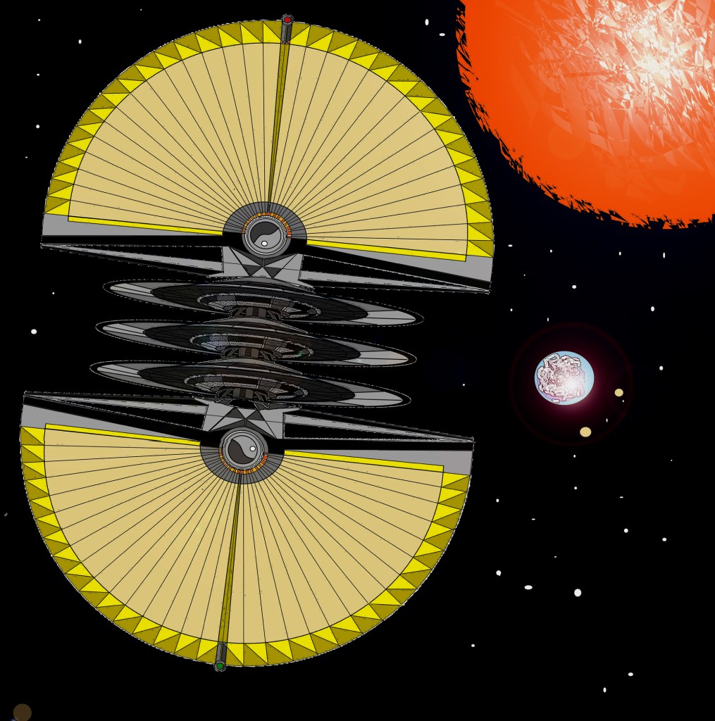Since no living human being would be alive when a Goldilocks Zone planet is reached, it will be necessary to create some form of stasis for either living humans or hold unborn children in an embryonic state until arrival. Even with such suspension of life, there would be necessary monitoring and maintenance of such a precious cargo. Artificial intelligence must progress to the point where such onboard systems can be maintained and sustained throughout the journey – and somehow assist in birthing at the appropriate time. The necessity of gravity as part of the sustenance of life forms aboard such a ship is essential. In “Twins,” a gravity disc suspended in liquid bearings turns, utilizing battery stored electric power, creating a gravity field for each of the 3 ships. Such a gravity disk has recently been proposed for a “space hotel” that will orbit the earth by the year 2025. The projection of that completion date seems optimistic, but the idea of a gravity disk is corroboration of the fictional disks aboard the starships in “Twins.”